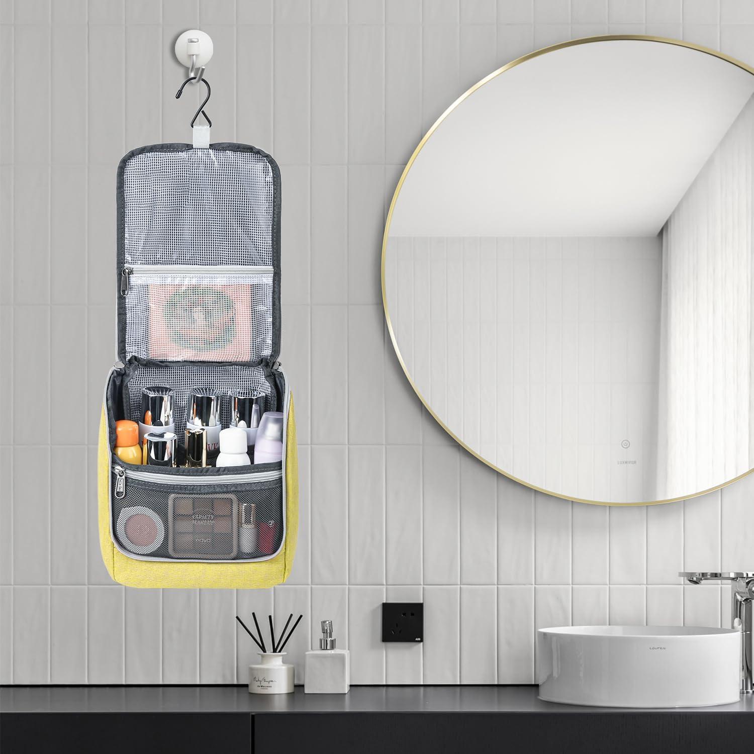 Sturdy Metal Hooks: The sturdy hooks allow you to hang your toiletry bag on any hook, door, rod, etc. and can be rotated 360° for easy access