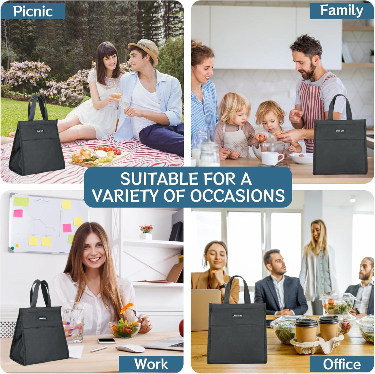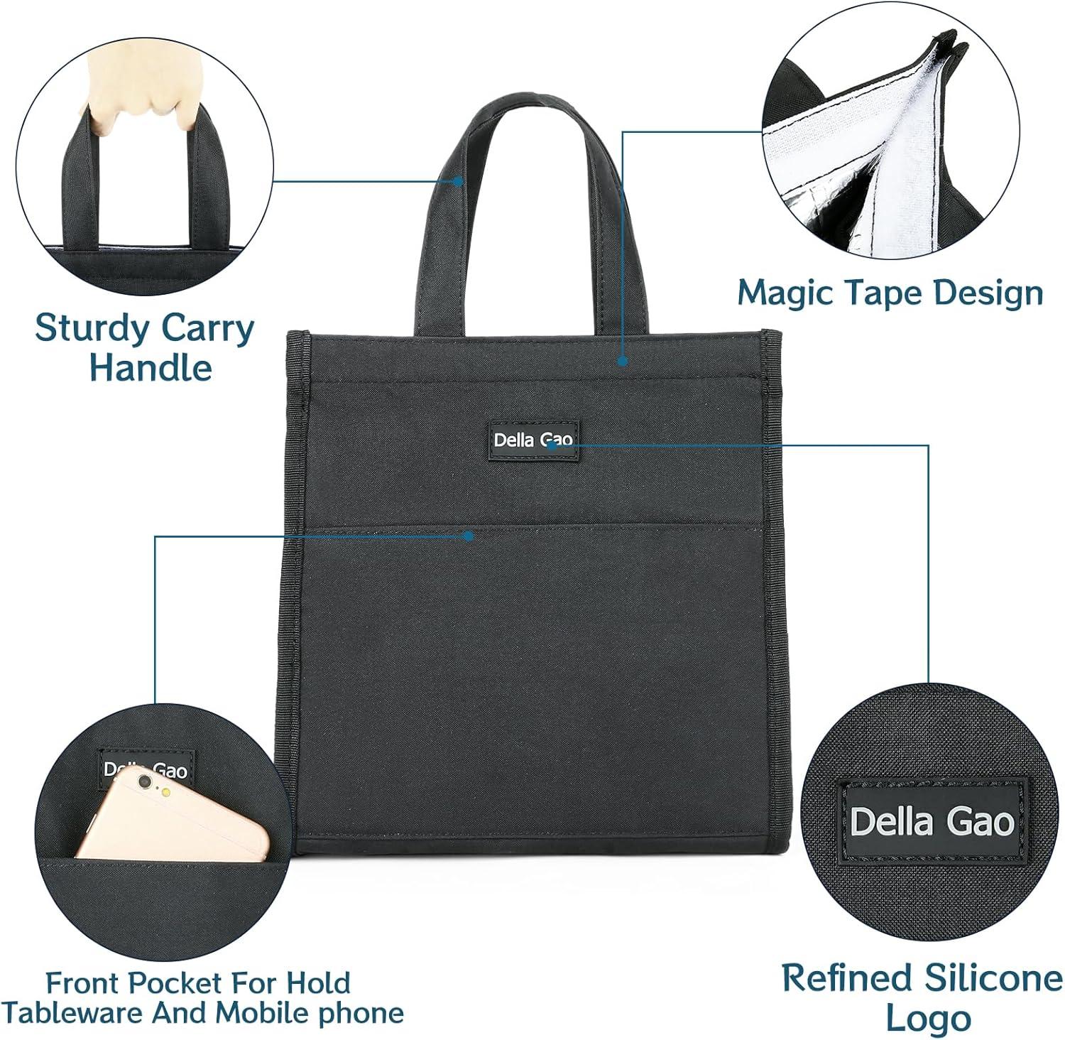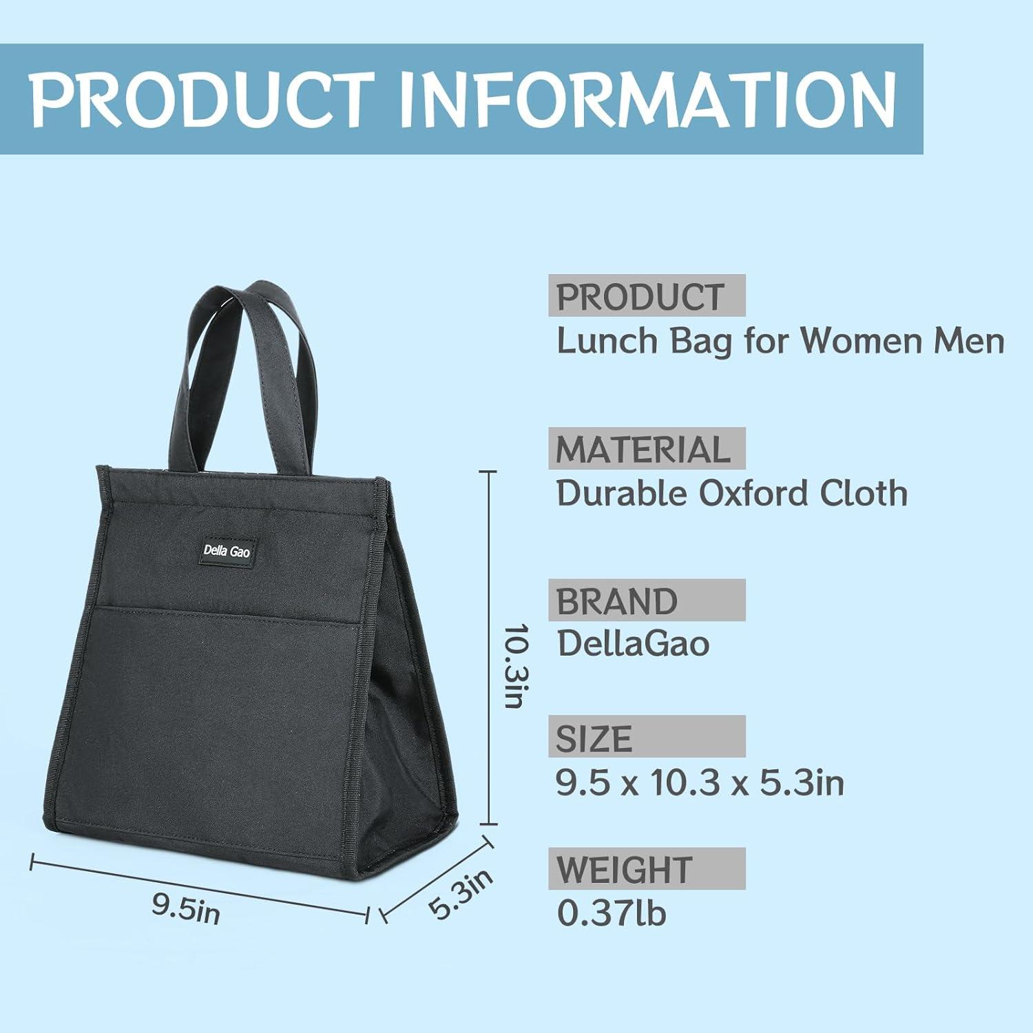 Portable and Versatile: Della Gao work lunch bag is super light, easy to carry with the perfect standard size. Waterproof small lunch tote can be used as a makeup bag, shopping bag, picnic bag, or insulated lunch bag for adults, women, men, nurses, teachers