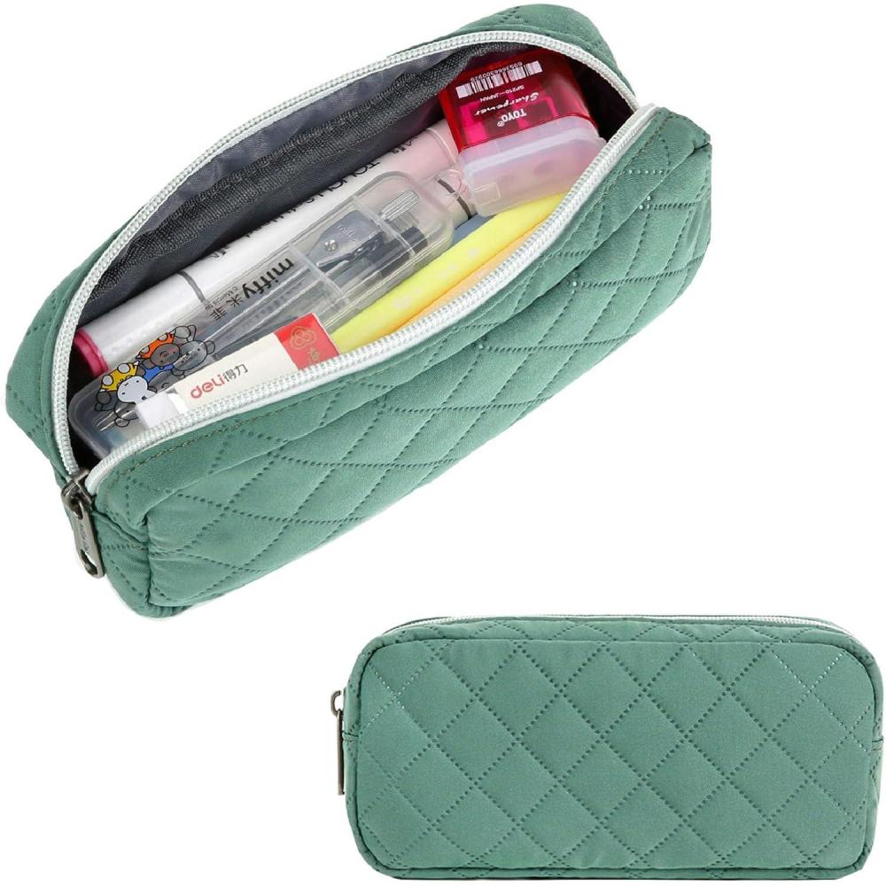 Della Gao Small Pencil Case Large Capacity Pencil Pouch Marker Pen Bag Coin Pouch Office Stationery Organizer (Beige-03RH)(Dark Green)